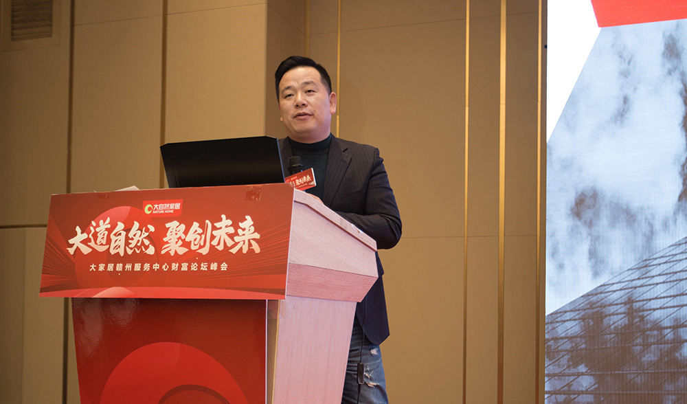 會議伊始,大自然家居董事長佘學(xué)彬先生進(jìn)行開業(yè)致辭,為我們做行業(yè)趨勢及集團(tuán)戰(zhàn)略的分享。