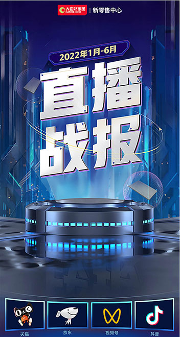6月30日,大自然家居發(fā)布今年上半年直播戰(zhàn)報,戰(zhàn)報顯示:大自然家居用四大直播玩法,僅6月份,在京東、天貓兩大平臺,就實現(xiàn)直播銷售額超120萬元,同時,通過三大舉措賦能線下門店,“授人以漁”,被業(yè)內(nèi)人士評價為“新零售的正確打開方式,也是行業(yè)新零售的趨勢”。