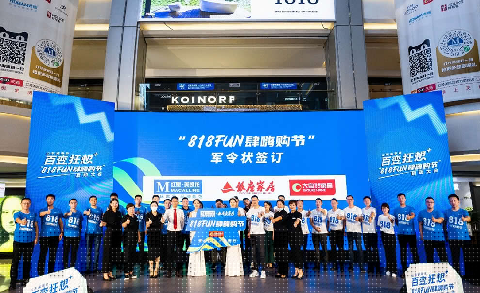 (圖為7月21日,山東濟(jì)南,紅星與大自然家居舉行818FUN肆嗨購節(jié)軍令狀簽訂儀式)