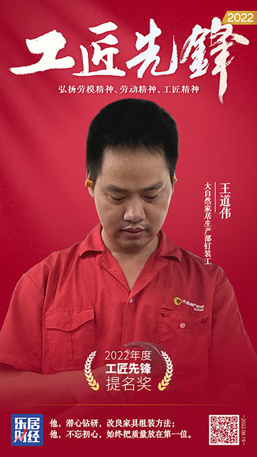 “2022工匠先鋒提名獎”也在現(xiàn)場揭曉,大自然家居生產(chǎn)部釘裝工王道偉獲得該榮譽(yù)。時代發(fā)展,需要大國工匠;邁向新征程,需要大力弘揚(yáng)工匠精神。