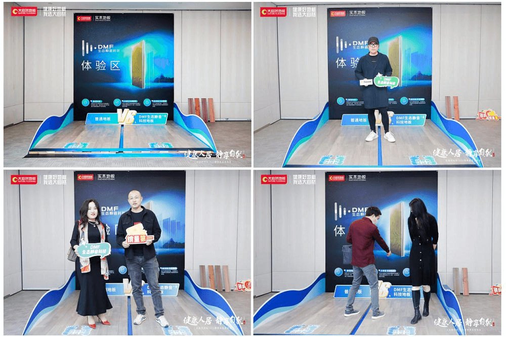 活動現(xiàn)場,大自然地板誠邀權(quán)威媒體、嘉賓前往DMF靜音空間體驗DMF生態(tài)靜音科技地板與普通地板的差別?,F(xiàn)場通過兩個不同區(qū)域的測試,明顯可見采用DMF生態(tài)靜音科技的地板穩(wěn)定無響聲;而普通地板踩上去則發(fā)出嘎吱的響聲,兩者產(chǎn)生了鮮明對比?,F(xiàn)場實際體驗之后,大自然DMF生態(tài)靜音科技新品得到在場權(quán)威媒體、嘉賓的高度認可。