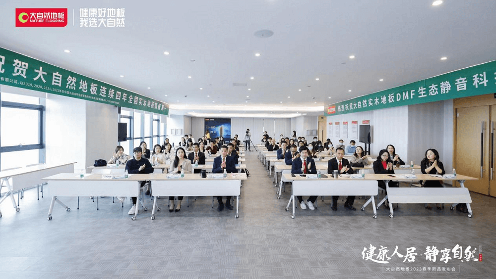 2023年3月15日,“健康人居 靜享自然”大自然地板2023春季新品發(fā)布會在佛山順德大自然家居總部隆重舉行。隨著“健康中國2030”戰(zhàn)略和“十四五”規(guī)劃的穩(wěn)步推進,健康人居話題備受關(guān)注。在此大背景下,大自然地板從健康人居出發(fā),在中國林產(chǎn)工業(yè)協(xié)會大力支持下重磅發(fā)布《大自然家居綠色產(chǎn)品白皮書》、在大自然家居研究院潛心研發(fā)下重磅發(fā)布DMF生態(tài)靜音科技新品,推動行業(yè)健康升級,為消費者構(gòu)建更加環(huán)保的健康家居生活。