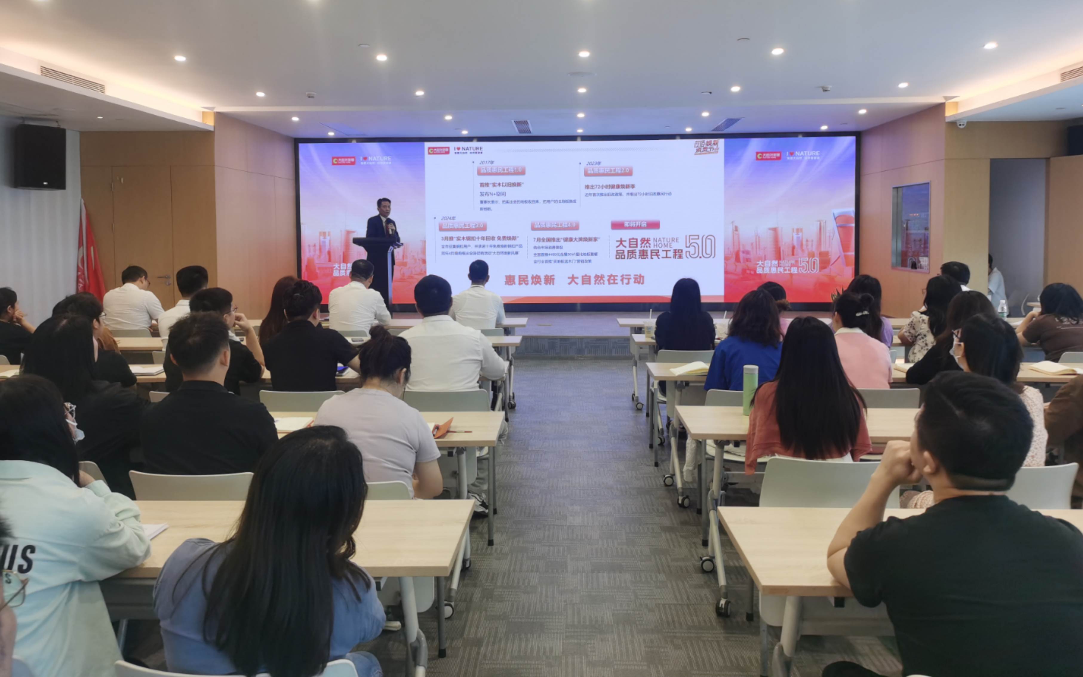 在品質(zhì)惠民工程5.0啟動儀式上,大自然家居董事長佘學(xué)彬表示:改造城鎮(zhèn)老舊小區(qū),是全國各地政府促進(jìn)城市更新的重要發(fā)展舉措。本次“以舊煥新”消費(fèi)節(jié)——國慶季暨品質(zhì)惠民工程第5期活動,與前4期一脈相承,以為用戶提供質(zhì)價俱優(yōu)服務(wù)為活動準(zhǔn)則,目的是要切實(shí)解決有舊改需求的客戶【去舊】【換新】兩大痛點(diǎn),不忘初心為舊改用戶提供健康環(huán)保省心服務(wù)體驗(yàn)。
