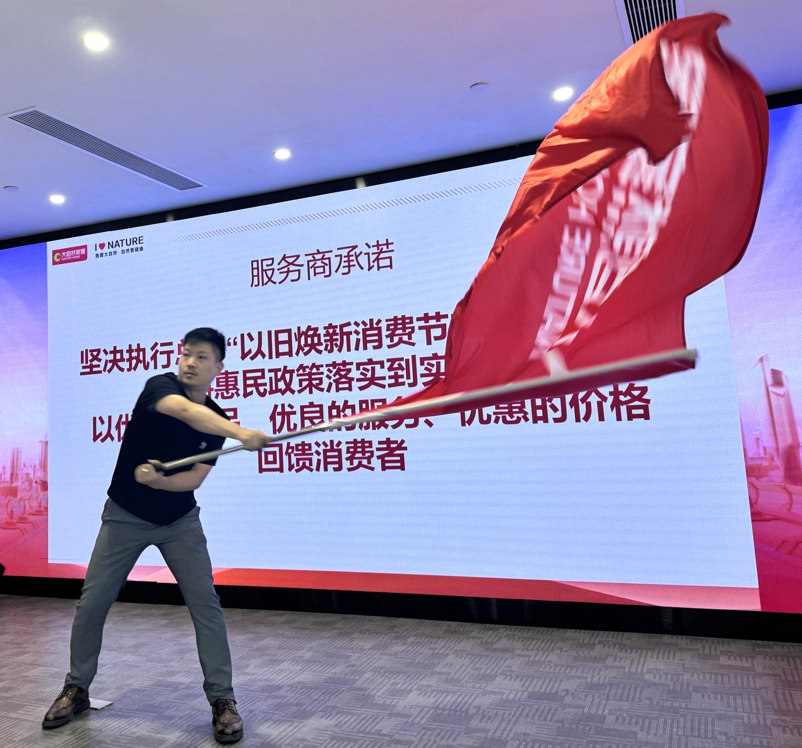 紙上談兵終覺淺,落到實(shí)處才是真。在啟動儀式上,大自然家居服務(wù)商代表鄭重宣誓,堅(jiān)決將“以舊煥新消費(fèi)節(jié)”惠民舉措貫徹落地,將活動氛圍推向高潮。響徹會場的誓詞,表明大自然家居自上而下將煥新活動落到實(shí)處的決心,用優(yōu)質(zhì)的產(chǎn)品、優(yōu)良的服務(wù)、優(yōu)惠的價格與用戶搭建信任橋梁,為用戶安心以舊換新保駕護(hù)航。