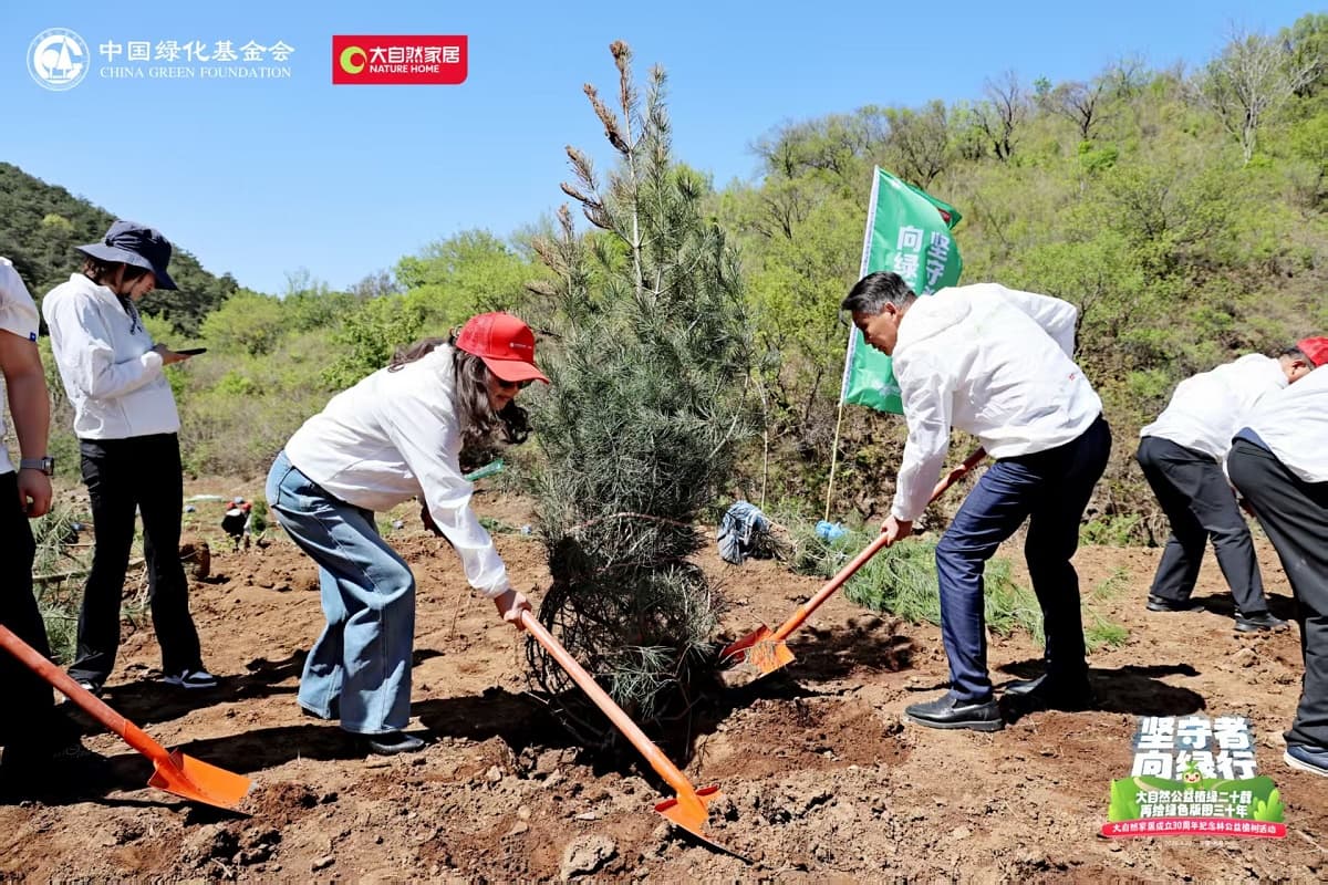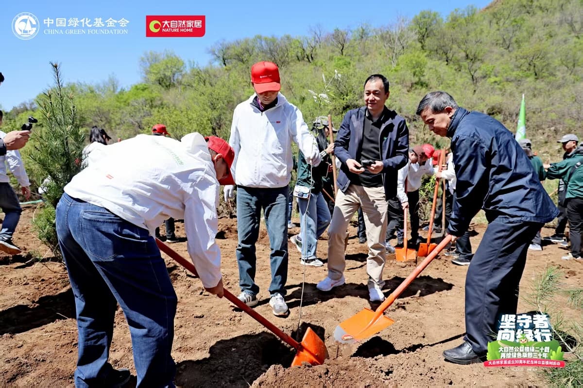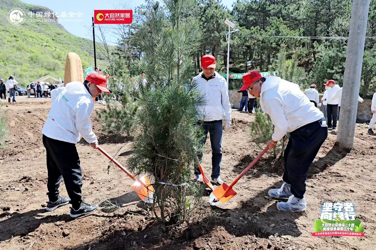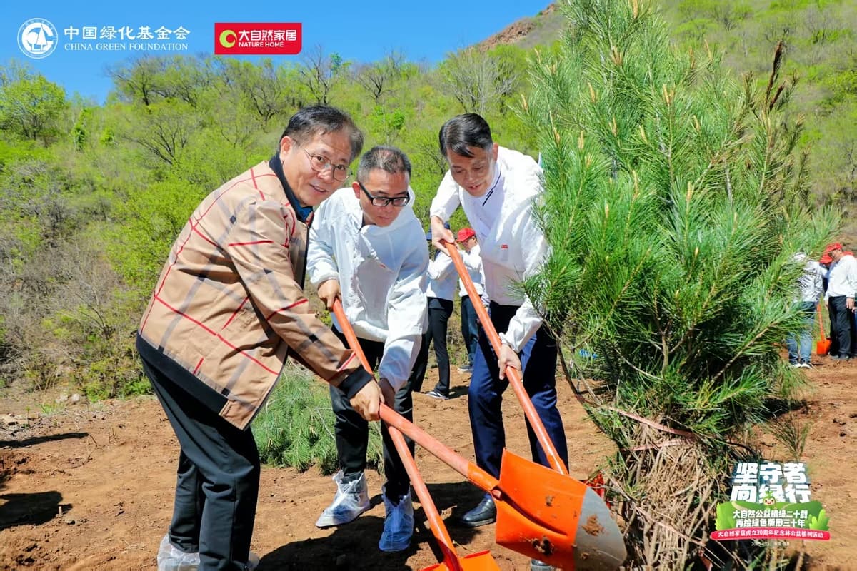 4月22日,值第56個世界地球日之際,大自然家居攜手中國綠化基金會,于北京密云區(qū)啟動“堅守者·向綠行”公益植樹活動。大自然家居以“成立30年、植樹20年”的雙里程碑,交出了一份“綠色智造”與“生態(tài)反哺”共生的可持續(xù)發(fā)展答卷?;顒蝇F(xiàn)場,中國綠化基金會、北京市園林綠化局、北京林學(xué)會、中國林業(yè)科學(xué)研究院、中國林產(chǎn)工業(yè)協(xié)會、中國林業(yè)產(chǎn)業(yè)聯(lián)合會、中國木材保護工業(yè)協(xié)會、中國木材與木制品流通協(xié)會代表,大自然家居高層管理人員、全國核心經(jīng)銷商和供應(yīng)商代表,媒體以及大自然家居消費者、公益植樹環(huán)保志愿者等各界人士,見證“中國綠色版圖”公益工程20年成果及未來十年計劃啟動。
