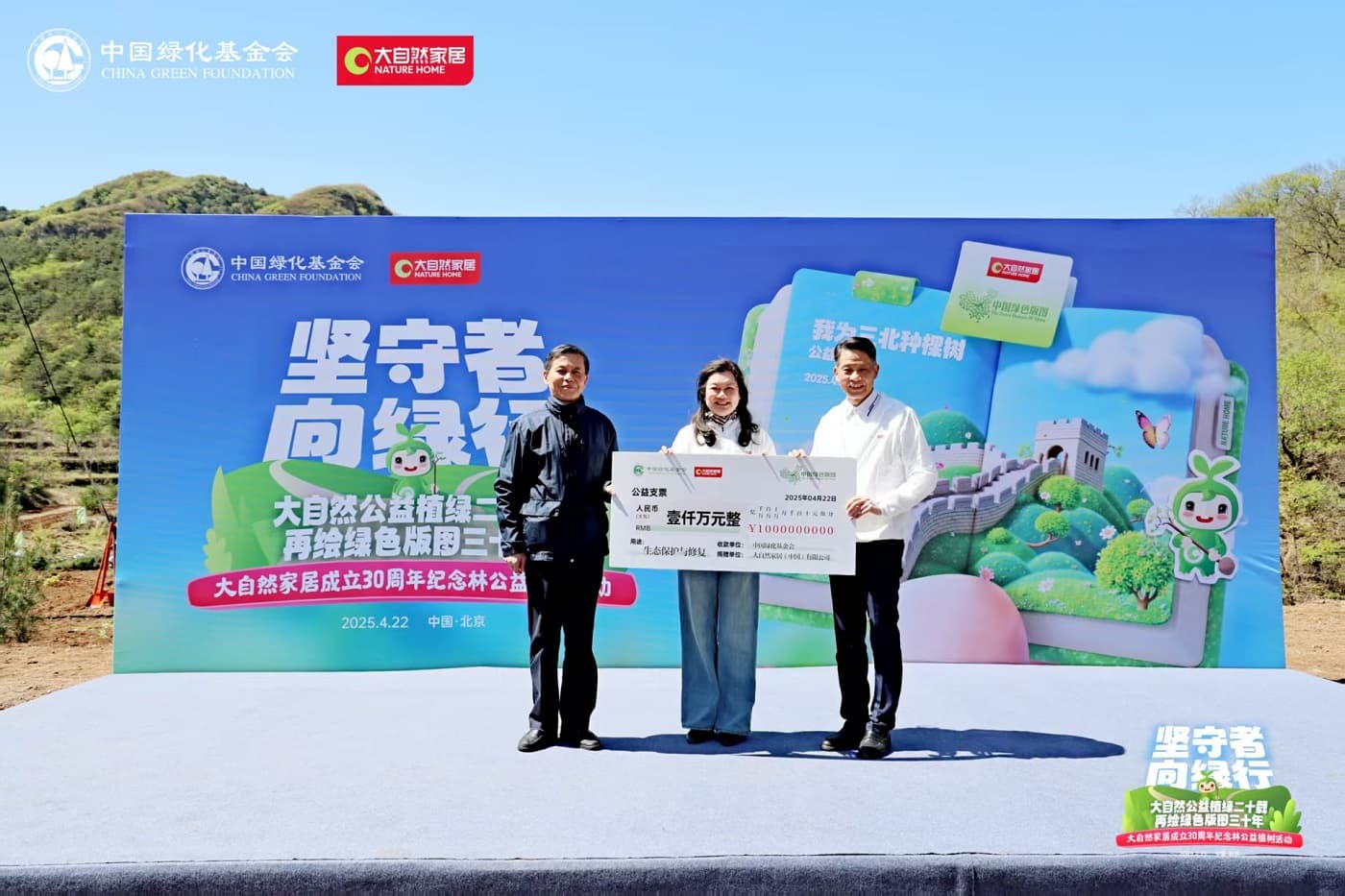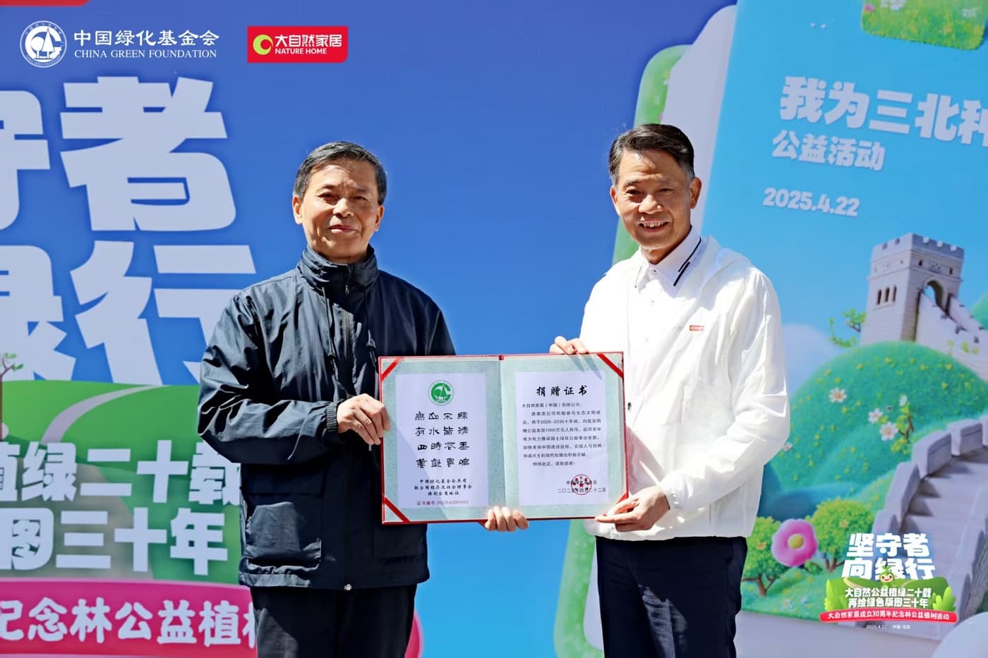 中國綠化基金會主席陳述賢與大自然家居董事長佘學(xué)彬共同啟動了“中國綠色版圖”第三個10年計劃。未來十年,大自然家居將繼續(xù)攜手中國綠化基金會,聚焦生態(tài)修復(fù)、城市碳中和林建設(shè)等生態(tài)工程,推動植樹行動從規(guī)模化造林向精準(zhǔn)化、科學(xué)化生態(tài)治理轉(zhuǎn)型,助力國家“三北”防護林工程與碳中和目標(biāo)。