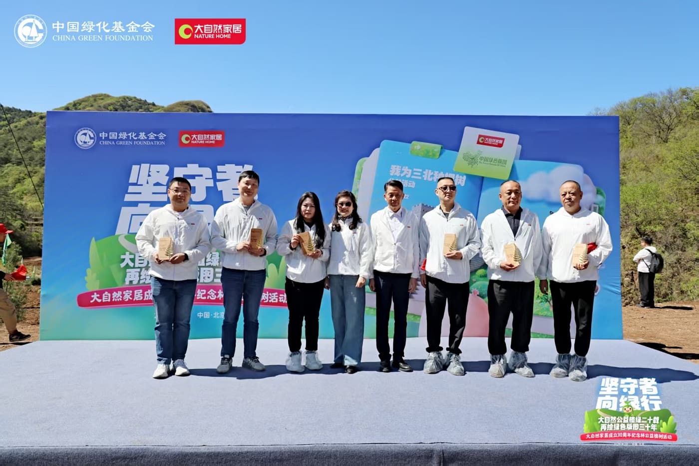 在密云生態(tài)林揭幕儀式上,中國綠化基金會主席陳述賢、大自然家居董事長佘學(xué)彬、北京市園林綠化局二級巡視員王小平、中國綠化基金會副主席徐濟德、中國林業(yè)產(chǎn)業(yè)聯(lián)合會會長封加平、中國綠化基金會副主席陳蓬、中國綠化基金會副主席葉智、中國綠化基金會秘書長張全洲、中國木材保護工業(yè)協(xié)會會長劉能文、中國木材與木制品流通協(xié)會會長李佳峰、大自然家居副董事長袁順意等,共同為“大自然30周年紀(jì)念林”揭幕。密云生態(tài)紀(jì)念林的落地,不僅見證了大自然家居30年來在綠色發(fā)展道路上的堅守,更彰顯了其將可持續(xù)發(fā)展理念轉(zhuǎn)化為產(chǎn)業(yè)實踐的戰(zhàn)略定力。