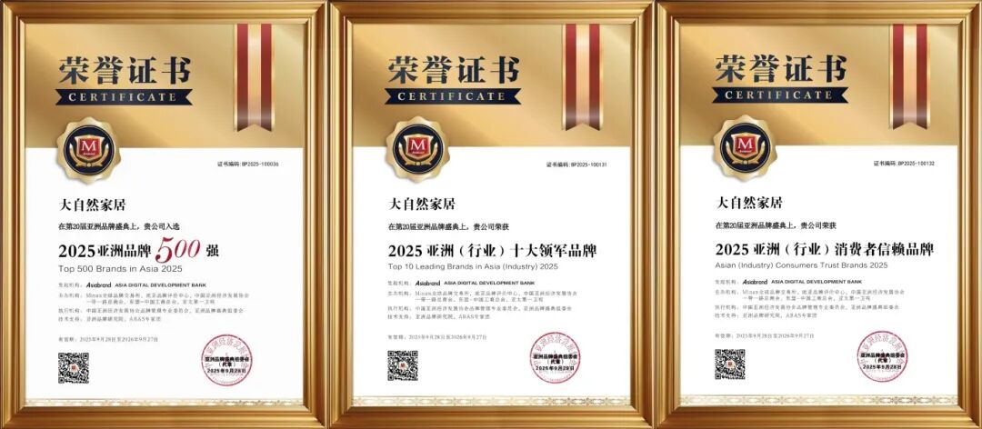 連續(xù)8年蟬聯(lián)“亞洲品牌500強(qiáng)”,是大自然家居堅守長期主義的榮譽(yù)注腳。從單一產(chǎn)品到大家居產(chǎn)業(yè)生態(tài)的構(gòu)建,不僅是產(chǎn)業(yè)格局的升華,亦是源于三十年來對產(chǎn)品、技術(shù)與責(zé)任的靜水深流,更是市場與消費(fèi)者信賴的雙重回響。征程未盡,步履不停。未來,大自然家居將繼續(xù)以健康家居為基石,擔(dān)當(dāng)生活方式的倡導(dǎo)者與綠色未來的建設(shè)者,以產(chǎn)品力、布局力與責(zé)任力,持續(xù)賦能美好人居,穿越周期,與行業(yè)共進(jìn)、與時代同行。