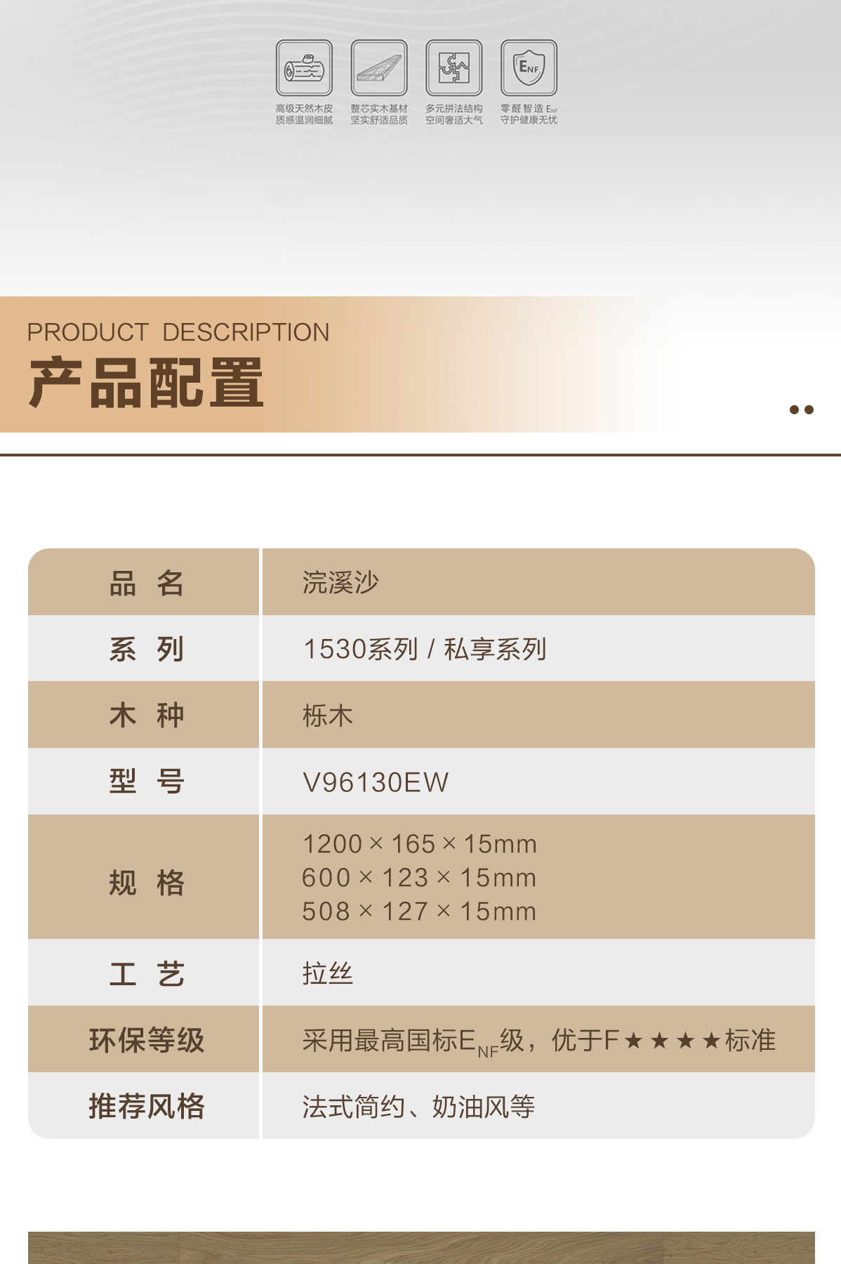 | 獨特工藝 | 芯實木 |