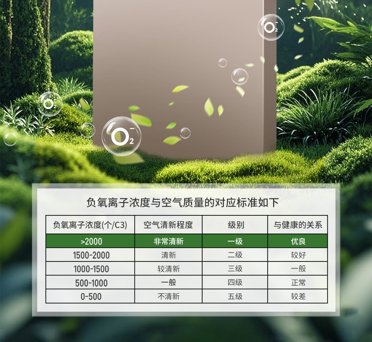 | 誘發(fā)空氣負(fù)離子量 | 比基礎(chǔ)環(huán)境提高10倍+ |