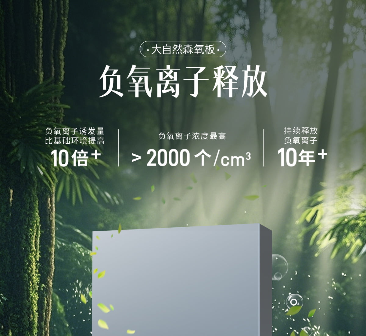 | 誘發(fā)空氣負離子量 | 比基礎環(huán)境提高10倍+ |
