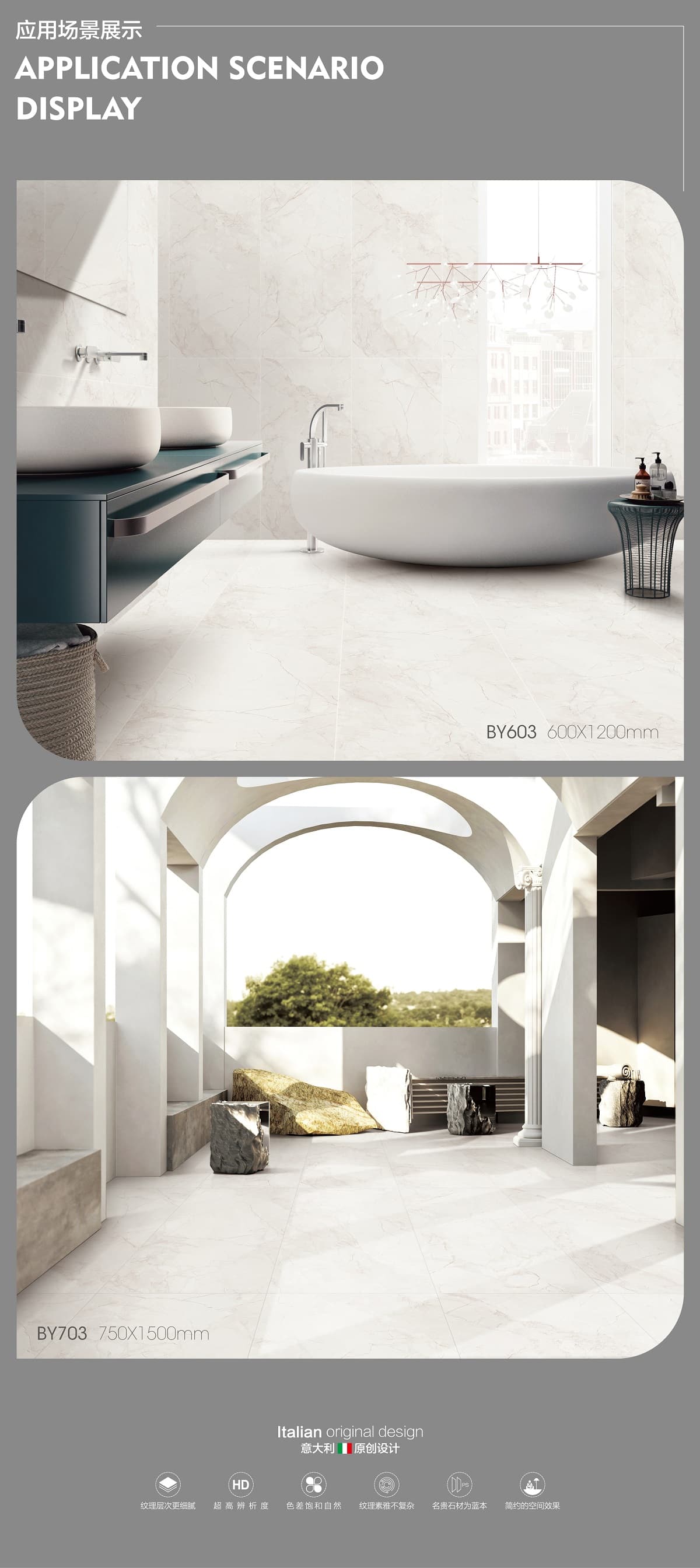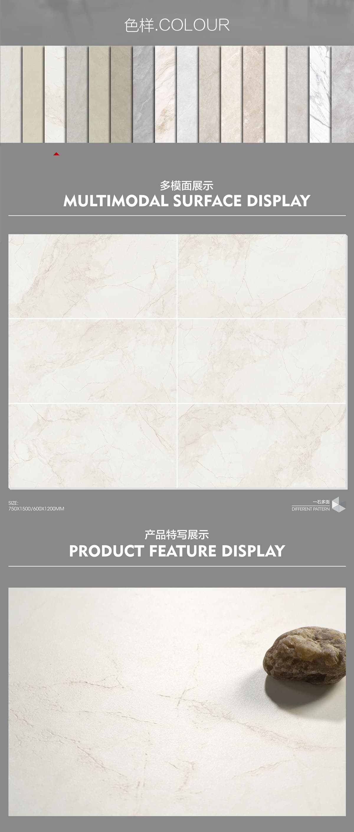 | 產(chǎn)品特性 | 表面柔和,防污效果強(qiáng),防滑R10指標(biāo)高,抗折強(qiáng)度好 |